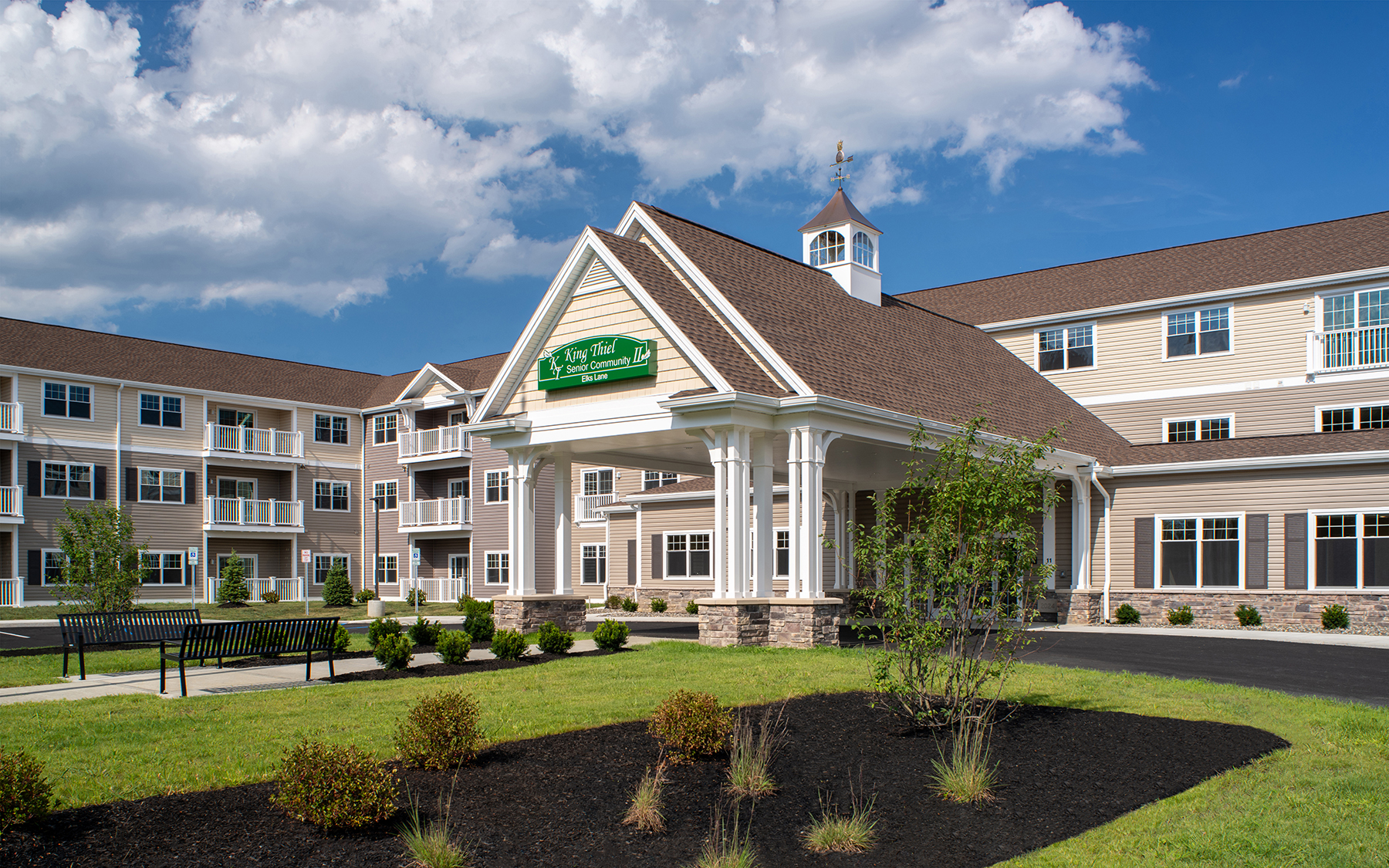 The King Thiel II Senior Community opened its’ door in August of 2024, providing 99 one and two-bedroom apartment options for independent older adults 55+ years or older. Available to residents is an outdoor fire pit, a bocce court, and the great room with a beautiful fireplace. During the warmer months, The Donald Led Duke Senior Pavilion is right on campus, perfect for concerts and gatherings for all the community to participate. Located on the first floor, there is a community café which sells frozen soups, meals and more as well as a programmable space which hosts a variety of art and exercises classes.